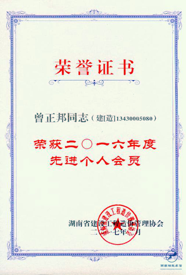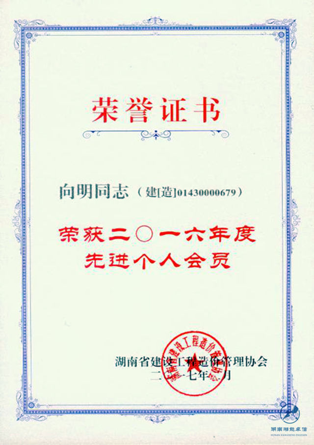 2017年2月湖南省建設(shè)工程造價管理協(xié)會組織開展了2016年度先進(jìn)單位會員、先進(jìn)個人會員、先進(jìn)單位、協(xié)會先進(jìn)工作者評選活動,我司獲得“2016年度先進(jìn)單位會員”稱號,向明、朱虛新、曾正邦獲得“先進(jìn)個人會員”稱號。