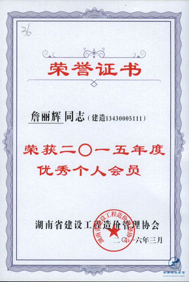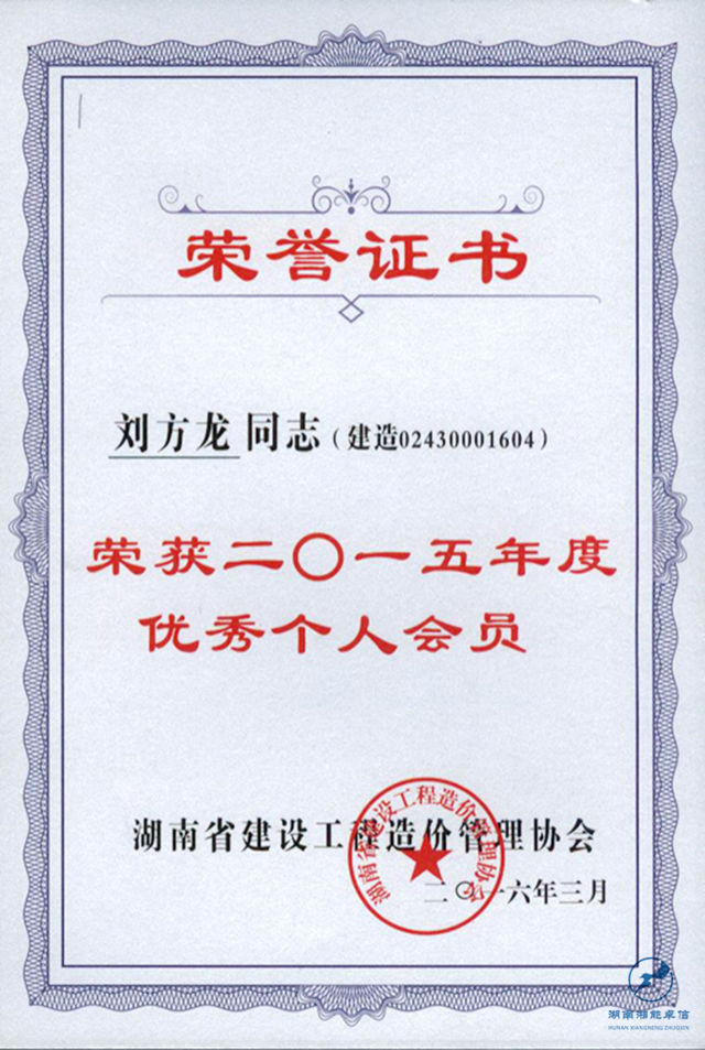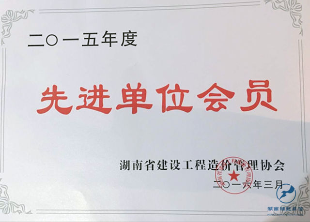 2015年12月湖南省建設工程造價管理協(xié)會組織開展了2015年度先進單位會員、先進個人會員、先進單位、協(xié)會先進工作者評選活動,我司獲得“2015年度先進單位會員”稱號,劉方龍、詹麗輝獲得“先進個人會員”稱號。